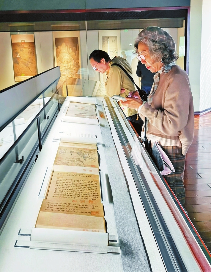 يُعجب الزوار بأعمال الخط والرسم في معرض قسم الفنون القديمة بمتحف شنتشن. الصورة: تساو تشن
